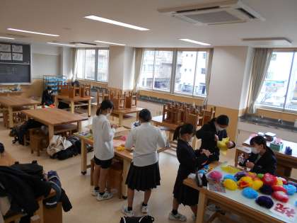 来週に迫った卒業式に向けて、放課後に1・2年生の有志が集まり、掲示物の制作に取り組んでいます。図案を元に、花紙や色画用紙を配置して先輩の卒業を祝うのに相応しいものになるよがんばっています。