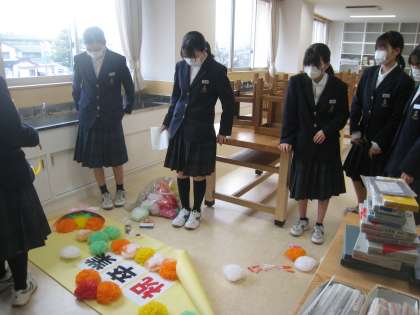 3年生の教室、廊下等を飾る「祝画」の制作を進めている様子です。生徒ならではの感性が光ります。