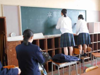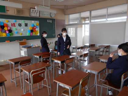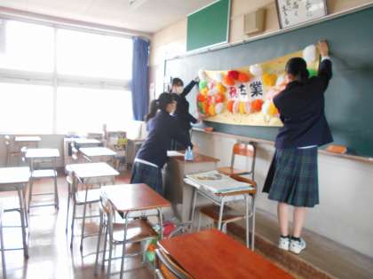 卒業生の教室の飾り付けを、2年生の有志で行いました。