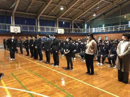 受賞伝達等の後、3年生が書いた教職員へのお礼の手紙を渡しました。