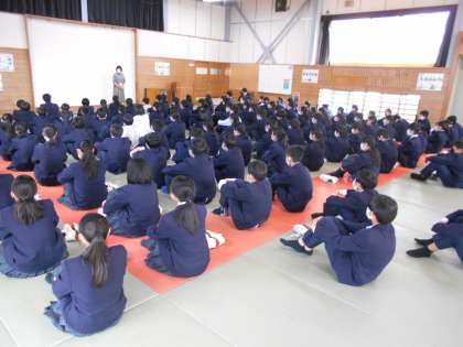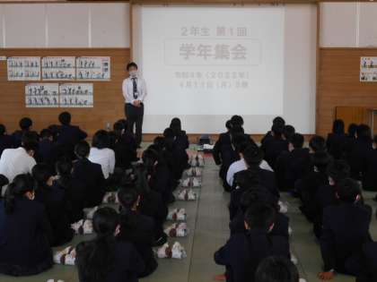 2年生になり、初めての学生集会を行いました。前半は、学年担当の自己紹介を行いました。