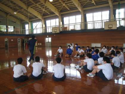 体力テスト、反復横跳び、握力、体前屈、10分間走などを測定しました。自分のもつベスト記録を更新できるよう、精一杯取り組みました。