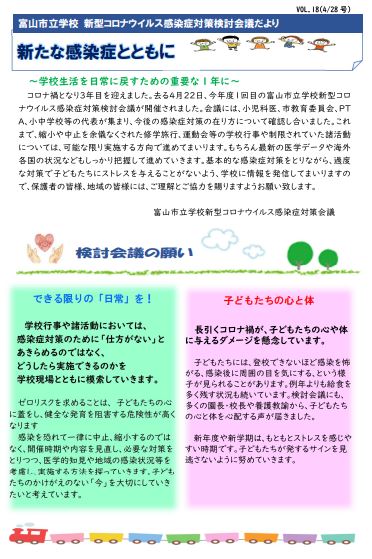 4月28日(木) 新型コロナウイルス感染症対策検討会議だよりVol.18の配付