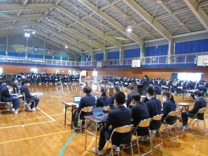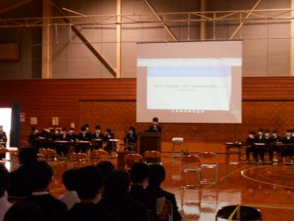 今日の5、6限は生徒総会がありました。昨年度は全校放送による開催でしたが、今回は体育館で一堂に会しての開催になりました。