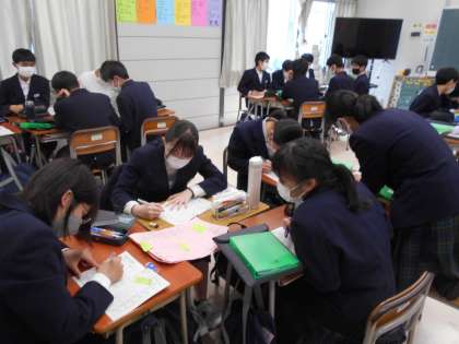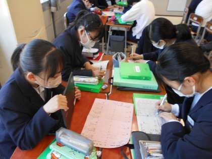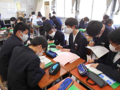 5月6日(金)3学年 総合的な学習の時間 公開日 2022/05/09 更新日 2022/05/09 3学年 総合的な学習の時間を使って再来週に迫った修学旅行の打ち合わせをしています。特に、2日目の班活動は、移動時間や方法を念入りに確認しています。