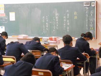 1学期の7月に予定している「14歳の挑戦」に向けて、敬語の正しい使い方を学びました。敬語は社会に出てからも使うので、この機会に正しい敬語を使えるようになってほしいと思います。