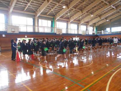 6時間目の学年集会では、修学旅行の新幹線の乗車訓練を行いました。短い時間の中で大人数が移動することの難しさを自覚しながら、声を掛け合って整列、移動をできました。