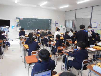 今日の総合的な学習の時間は、3年間使用するプリント綴りファイルを配布しました。1学期は、富山県の歴史や文化について学習を進めていく予定です。今日は、クイズ形式のプリントを使って理解を深めました。