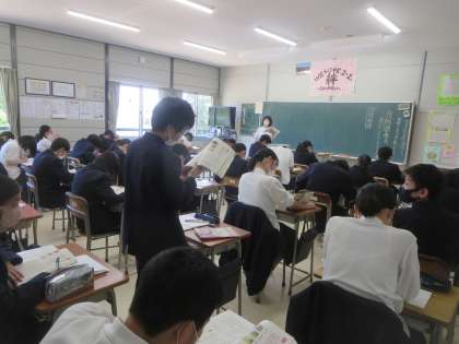 気温が高くても、2年生は集中して授業に取り組んでいました。