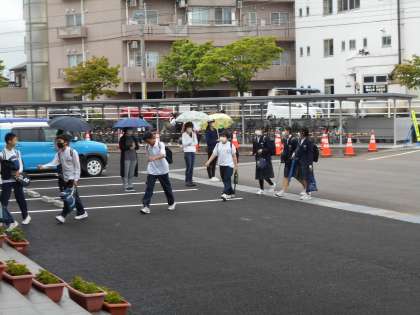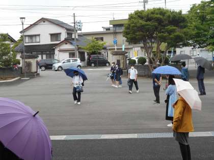 今日から3日間、五福校区の地域の皆さんとPTAの育成会役員の皆さんが玄関に立ちあいさつ運動を実施します。登校している生徒に対して、すがすがしいあいさつをかわしてくださいました。