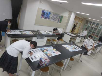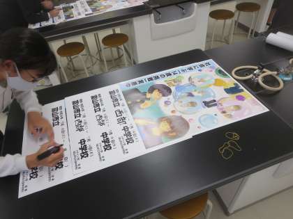 「社会に学ぶ『14歳の挑戦』」で活動する事業所が決まり、実行委員たちは係ごとに仕事を進めました。今日は、事業所に掲示してもらうためのポスター作成をしました。2年生は、日に日に気持ちが高まっているようです。