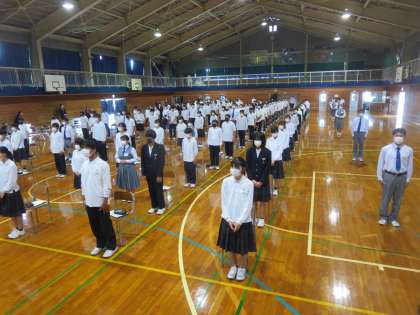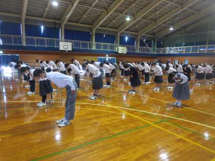 「社会に学ぶ『14歳の挑戦』」まで1ヶ月前となりました。富山商業高等学校の生徒が来校し、「社会に学ぶ『14歳の挑戦』」に向けて挨拶の大切さや正しい言葉づかいについて話をしてくださいました。ビジネスマナーは大人になる上でも重要なことなので、この機会に身につけましょう。