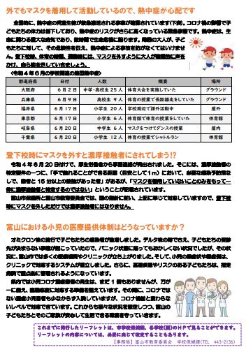 富山市立学校新型コロナウイルス感染症対策検討会議だよりVol.19