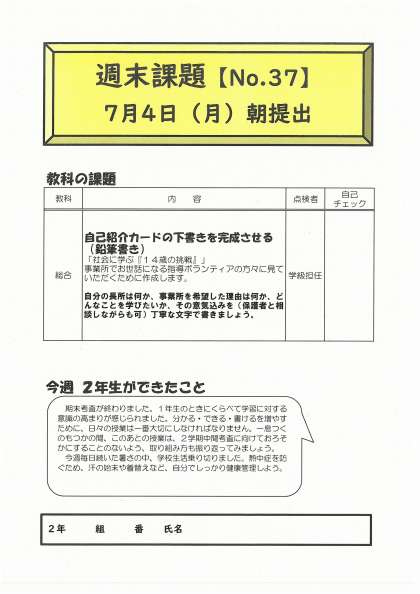 7月12日から始まる「社会に学ぶ『14歳の挑戦』」が始まります。