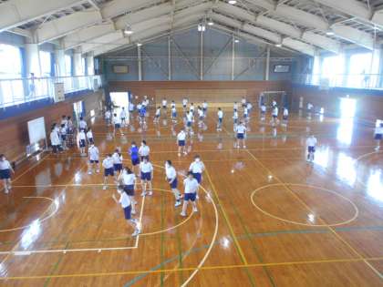ビーチバレーの次はクラス対抗ドッチボールです。暑い中、白熱した試合を繰り広げていました。その後の掃除も頑張っていました。