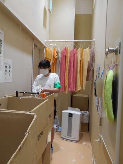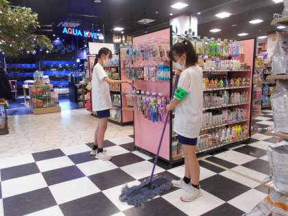 店内清掃を任された生徒と裏でペット用のトイレのシートを準備する生徒に分かれて活動していました。「こんにちは。」と声をかけたら、とても素敵な笑顔であいさつを返してくれました。