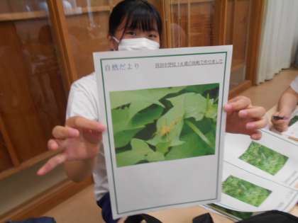 もう一組は、レッサーパンダの世話をしていました。 午後は施設の中で、自分が気になるパーク中にある草花や、虫を撮影し、図鑑などでその生態を調べてまとめていました。