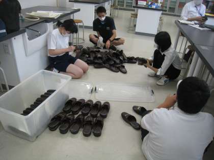 体育館の掃除、使わなくなった備品の運搬、掲示物のはりかえ、リサイクル封筒の作成、来客用スリッパの整頓と収納を行いました。