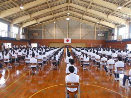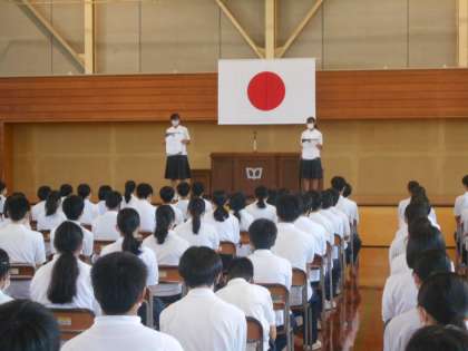 涼しさも感じられるようになり、体育館で全校生徒そろっての始業式を行うことができました。