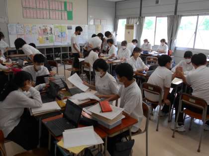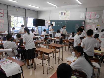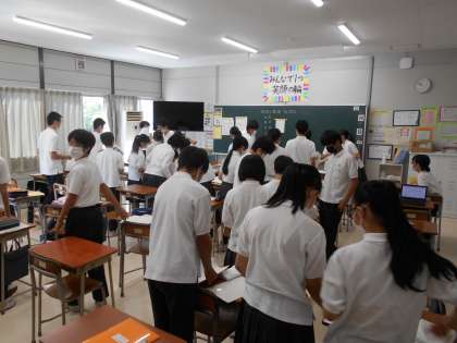 始業式後は、学級毎の活動でした。夏休みの課題や提出物を集めたり、2学期の抱負を書いたりしました。