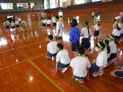 空模様と相談しながら、2、3限は学年種目の練習をしました。1、2年生は体育館で、3年生は雨が降っていなかったのでグラウンドで練習をしました。