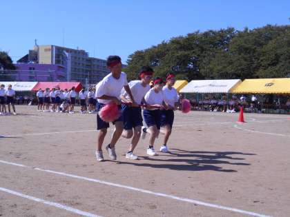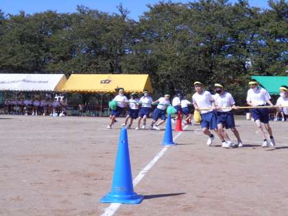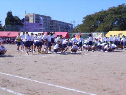 1学年種目「台風の目2022」が行われました。4人一組で棒を持ってコーンを回りました。呼吸とペースを合わせて、ゴールラインにでは待機している団員の足に棒をくぐらせてリレーを行いました。