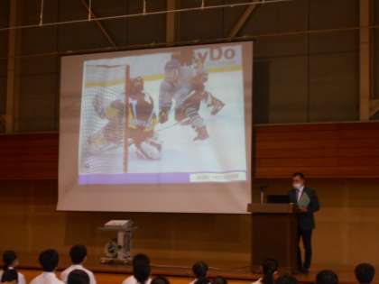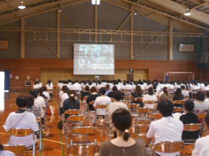 午後から体育館で私立、国立合わせて6校の先生方に高校の説明をしていただきました。各学校の魅力や中学校との違いも分かり、これからの進路選択に参考になる内容を説明していただきました。保護者の方にも来ていただき、良い機会となりました。