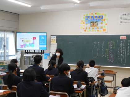 2限〜4限に授業参観を実施しました。保護者の方は授業の参観や生徒作品の鑑賞をされました。理科室2では科学作品の展示も行われたり、生徒玄関ホールには校外学習の様子がディスプレイで放映されたりしていました。
