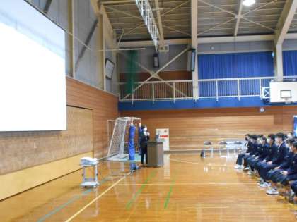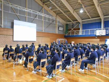 3限に富山県警察本部少年サポートセンターから、4限に富山西警察署から講師を招き、ネットモラル講座を実施しました。講演ではSNSのトラブルやオンラインゲームを利用する際の注意などが紹介されました。家庭でのルール作りやペアレンタルコントロールをバランスよく利用すことについて説明されました。