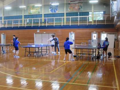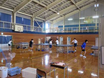 体育館では卓球部が活動し、大会に向けて実践練習を繰り返しています。