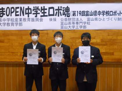 本日(11/12)に創造アイディアロボットコンテスト 東海・北陸地区富山県予選が興南中学校の体育館で行われました。基礎部門は10チームで富山県の代表を争い、本校からは4チームが参加しました。結果、2チームが12/3(土)に行われる東海・北陸大会に出場する予定です。