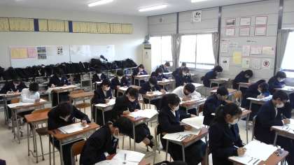 11/24(木)からの2学期末考査も最終日となりました。計画的に学習を進めた成果は発揮できたでしょうか?答案が返却されたら、間違えた個所をしっかり見直しましょう。3年生は一息つき、12/1(木)〜2(金)の中3学力調査に向けて、もう一度頑張りましょう。