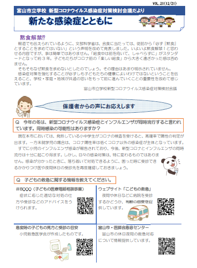 12月22日(木) 富山市立学校新型コロナウイルス感染症対策検討会議だよりVol.20