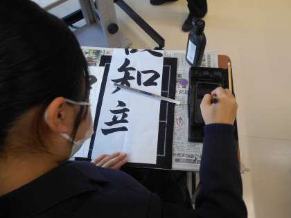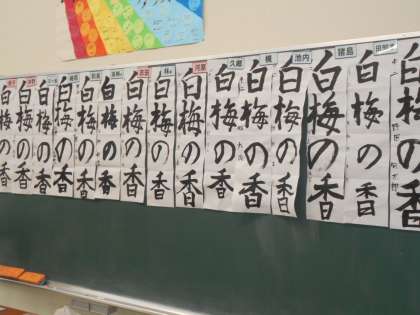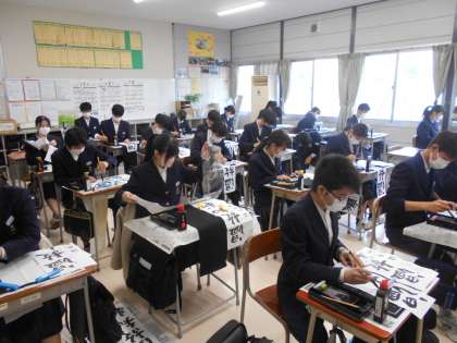 3限に書き初め大会が行われました。年末の授業や冬休みに練習した成果を発揮し、落ち着いた雰囲気で取り組みました。
