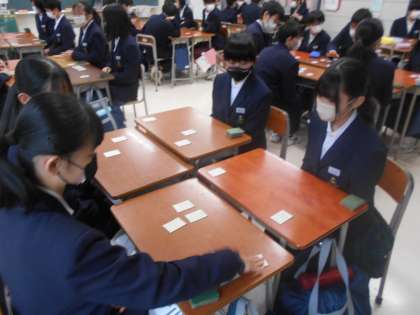 1年生の国語では、百人一首を通して古典の世界に親しんでいます。