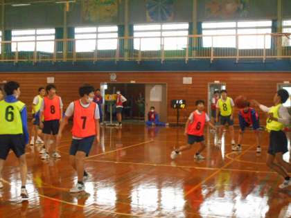 3年生の保健体育では、バスケットボールでゲームを行いました。3ポイントシュートを決めた生徒もいました。