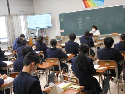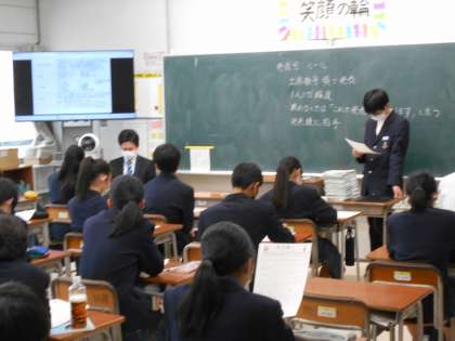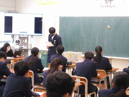 6限に冬休みの課題で調べてきた高校について発表をしました。高校独自の行事や特徴を学ぶことができました。