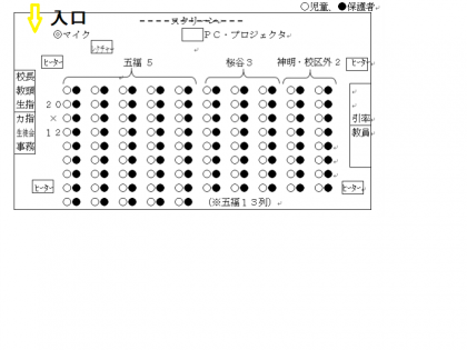 学校ごとに座席を準備してあります。校区外の方は、神明小のブロックにお座りください。