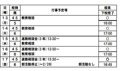 2月13日(月)今週の予定
