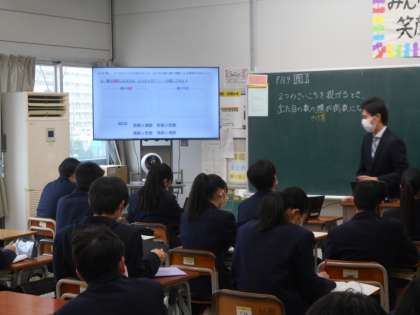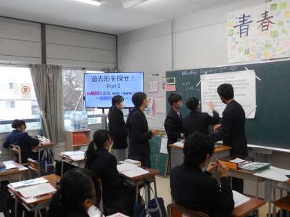 1年生の英語ではbe動詞と一般動詞の過去形を黒板の文章から探しました。