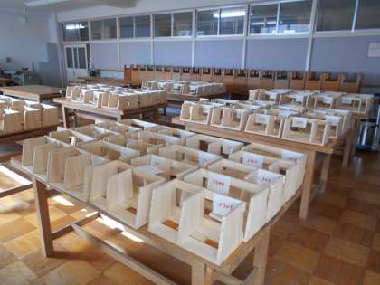 【中写真】2年生の技術で製作した本立てが完成しました。3月には家に持ち帰り、活用してください。