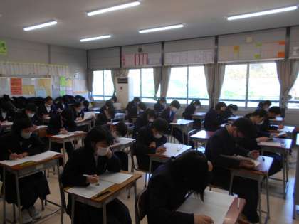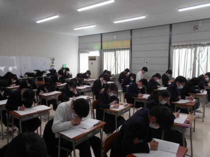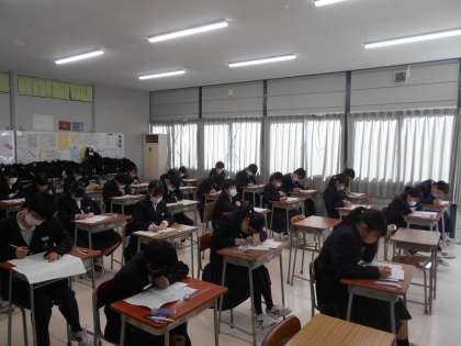 1,2年生は2/24(金),27(月),28(火)の3日間、学年末考査に取り組んでいます。今年度を締めくくるテストです。生徒たちは時間いっぱい問題に取り組んだり、見直したりしています。あと一日がんばりましょう。