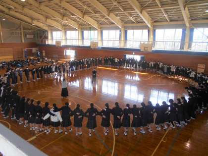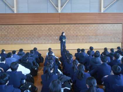 明日(3/8)、明後日(3/9)に行われる県立高校一般入試に向け学年集会を行いました。持参品や留意事項等の確認後、学年全体で円陣を組み、気合いを入れました。