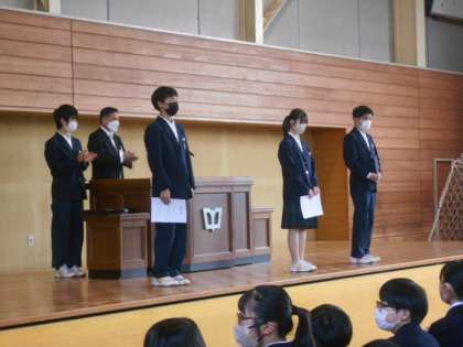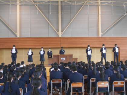 3月20日(月)生徒会役員認証式 公開日 2023/03/22 更新日 2023/03/22 西中NEWS 令和5年度前期生徒会役員認証式と委員長の委嘱式が行われました。来年度に向けて気持ちをを新たに「学校をよりよくしよう」という意識をもちました。