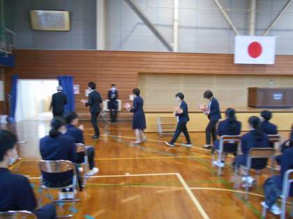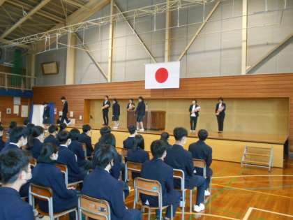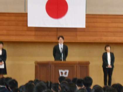 離任式が行われ、本校を離任する教職員から生徒達へ挨拶がありました。