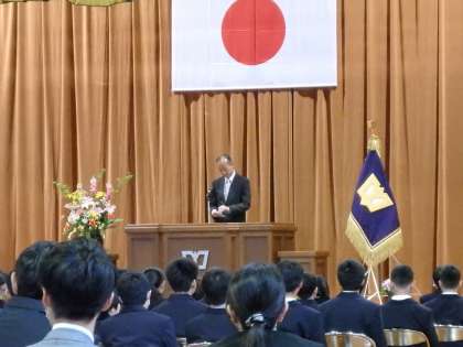 新入生は、校長からの式辞や育成会会長からの祝辞をしっかり聴いていました。