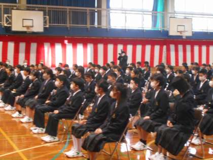 新入生は、校長からの式辞や育成会会長からの祝辞をしっかり聴いていました。