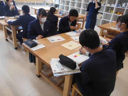 【写真中】2年生の美術では、パッケージデザインに向けて、味を色で表現してみました。