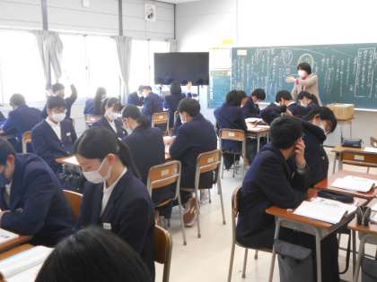【写真右】3年生の国語では、「握手」を班で朗読し合いました。