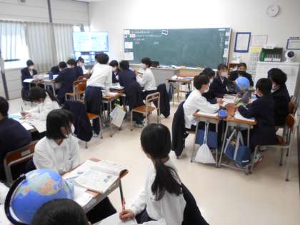 6限目は1組「音楽」、2組「英語」、3組「社会」でした。この授業を終えれば、5連休です。